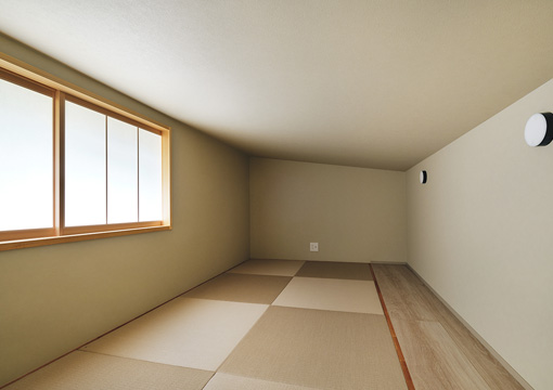 リビングの一角には中二階。リビングの吹き抜けと繋がることで、個の時間も、家族との時間も大切に。